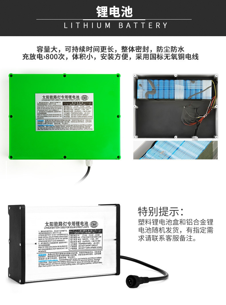 太陽能鋰電池:12V系統電壓,品牌三元電芯,30AH鋰電池。